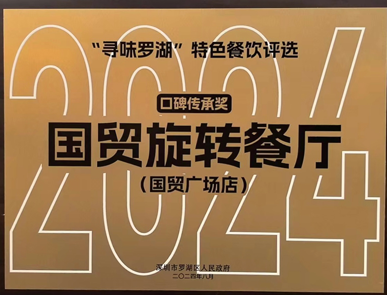 2024-10-14國貿旋轉餐廳榮獲2024年“尋味羅湖”特色餐飲評選“口碑傳承獎”稱號9月29日,2024年“尋味羅湖”特色餐飲評選活動授牌儀式圓滿落幕,國貿旋轉餐廳榮登“尋味羅湖”特色餐飲榜單,獲得“口碑傳承獎”稱號。
