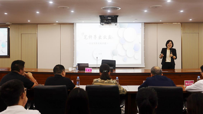2024-05-31深物業(yè)集團舉辦公文寫作培訓為進一步提升集團各級行政工作人員業(yè)務能力和業(yè)務水平,推動全集團行政管理工作的制度化、規(guī)范化、科學化建設,5月23日,深物業(yè)集團舉辦了2024年度公文寫作培訓。集團總部各部室以及所屬各級企業(yè)相關人員等共計250余人通過線上、線下相結合方式參會。